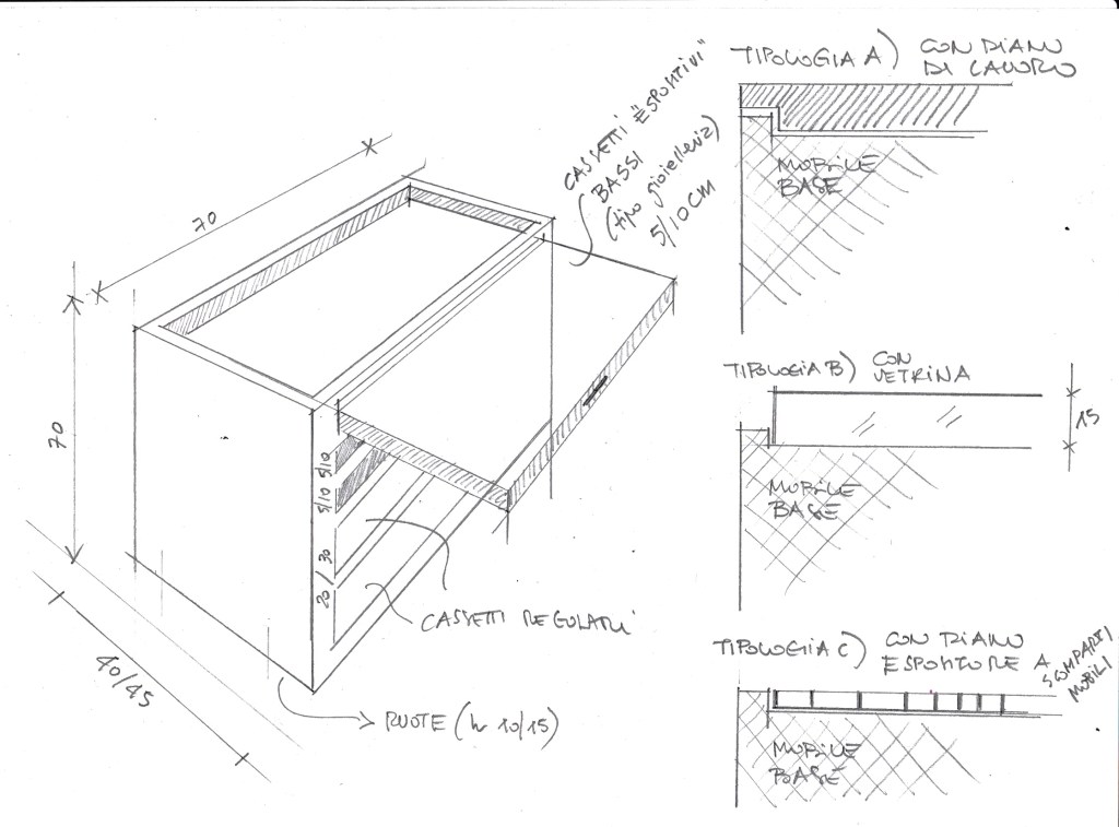 Elaborazione del concept di progetto di spazi commerciali finalizzati alla gestione di marchio in franchising: distribuzione modulabile degli spazi, disegno degli arredi, ideazione del format.
